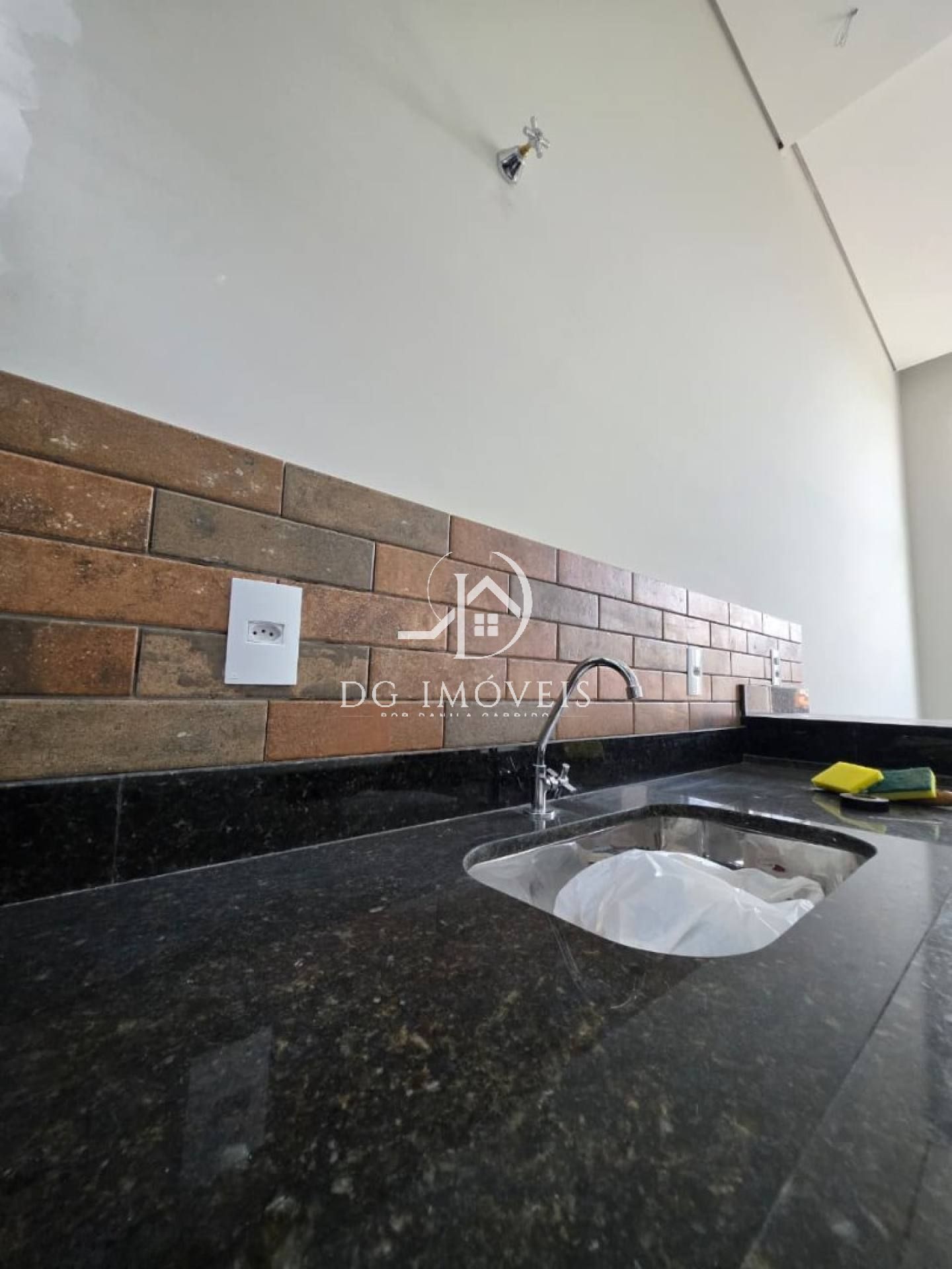 Possui teto 100% em gesso, portas e esquadrias em alumínio preto, janelão frontal, cozinha com revestimento em azulejo, pia e balcão em mármore, além de banheiros completos com azulejo e nicho embutido.